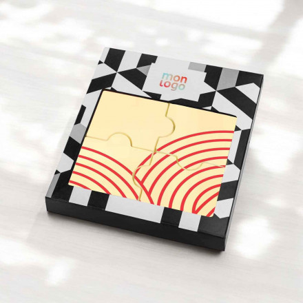 Découvrez une expérience ludique et gourmande avec le puzzle en chocolat blanc personnalisé 'Choko Puzzle'. Ce délicieux puzzle se compose de 4 pièces de chocolat blanc savoureux, créant une combinaison parfaite entre jeu et gourmandise.